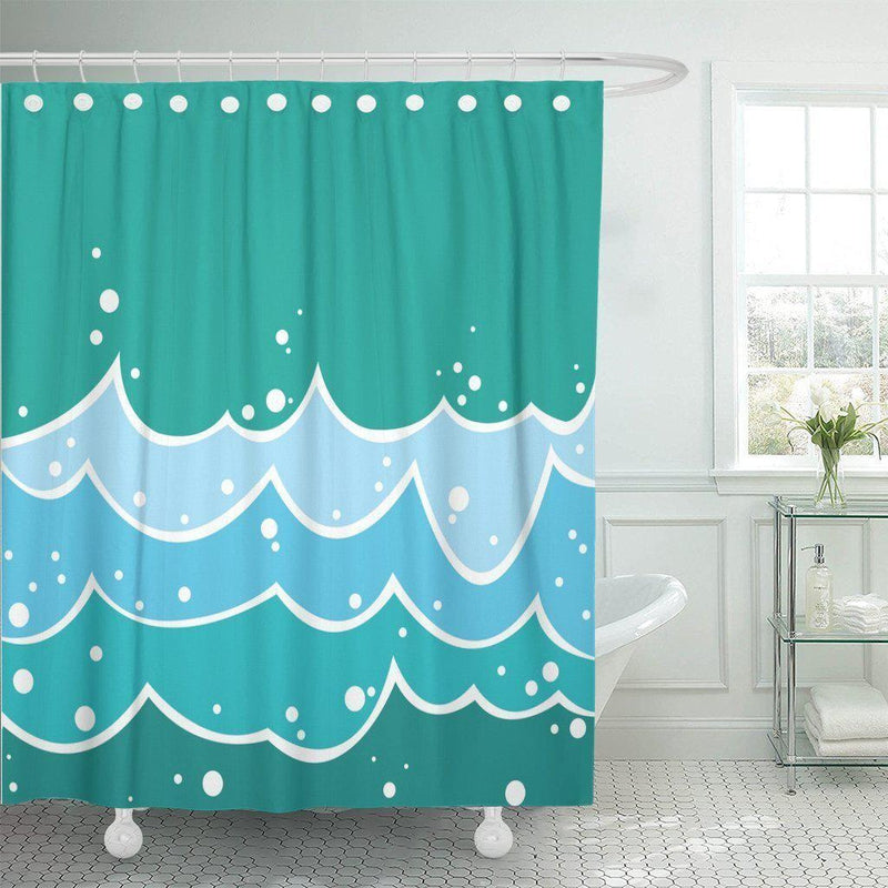 Ikke vent med å fornye baderommet ditt. Dette akva-blå dusjforhenget med bølgemotiv er den enkle og rimelige måten å gi rommet en komplett make-over på.