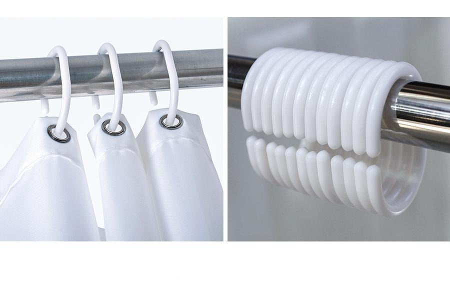 - Enkel Montering: Leveres med forsterkede maljer for enkel opphenging på standard dusjforhengstenger.