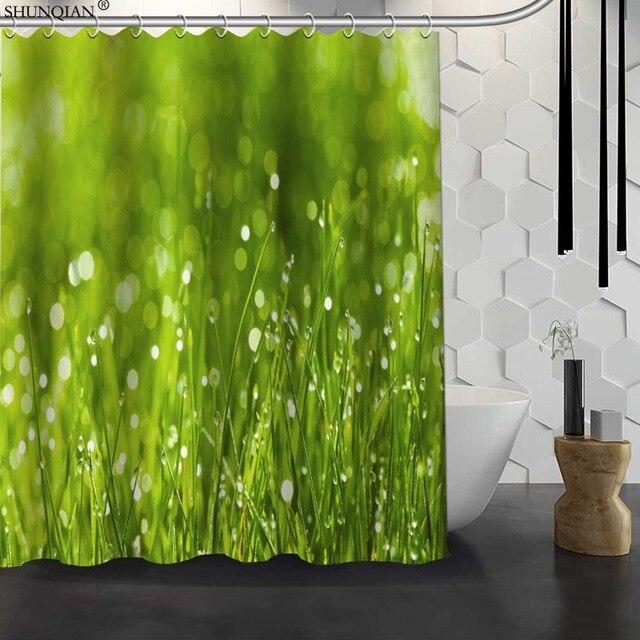 Frisk opp badet med et Dusjforheng med grønt gress motiv