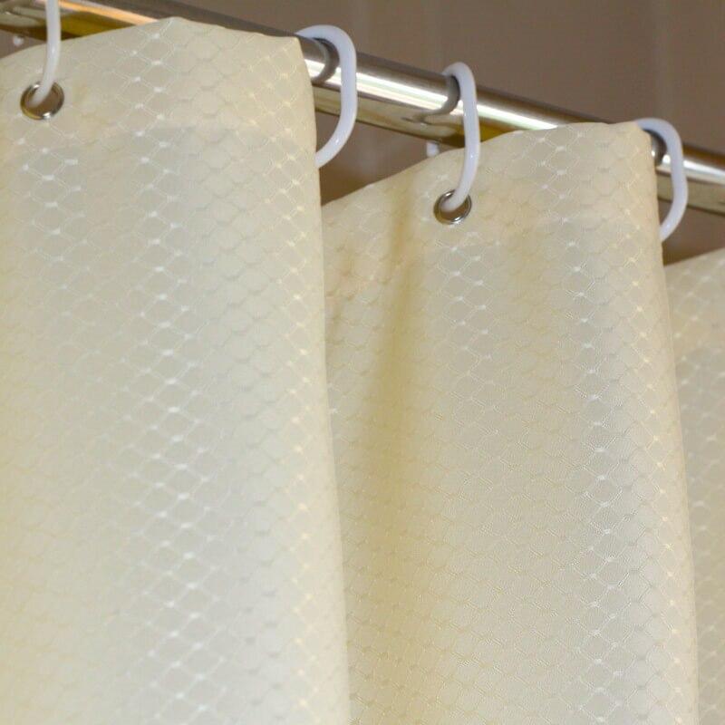 Lei av dusjforheng som ikke dekker hele dusjen og slipper ut vann? Vårt ekstra brede dusjforheng i tekstil er løsningen du trenger. Dette elegante og funksjonelle forhenget er designet for å gi full dekning og beskyttelse, selv i større dusjområder. Det lette, kremfargede stoffet med et delikat diamantmønster gir en følelse av ro og orden, og forvandler badet ditt til et fredelig tilfluktssted. Forestill deg å trå inn i dusjen, omgitt av dette vakre forhenget som holder vannet inne og gir deg privatliv. Det er mer enn bare et praktisk element; det er en viktig del av baderomsinnredningen som forsterker følelsen av velvære og renhet.