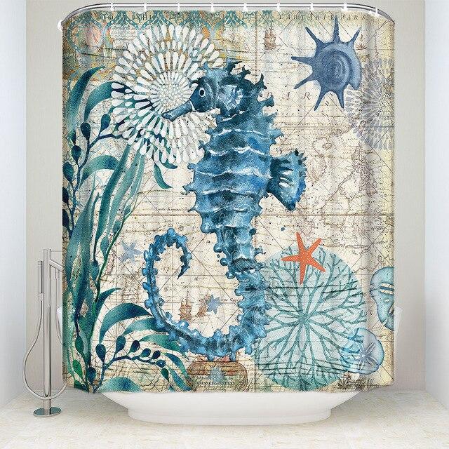 Forvandle Badet Ditt med et Maritimt Dusjforheng med Stor Sjøhest