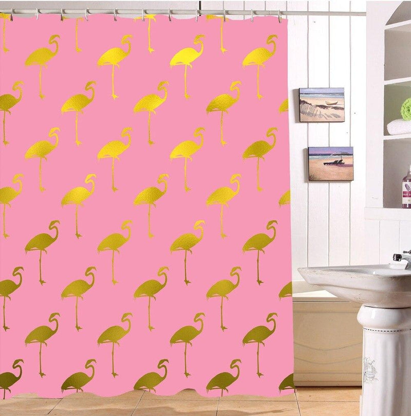 - Unikt design: Med et mønster av gyldne flamingoer på en rosa bakgrunn, vil dette dusjforhenget garantert skille seg ut.